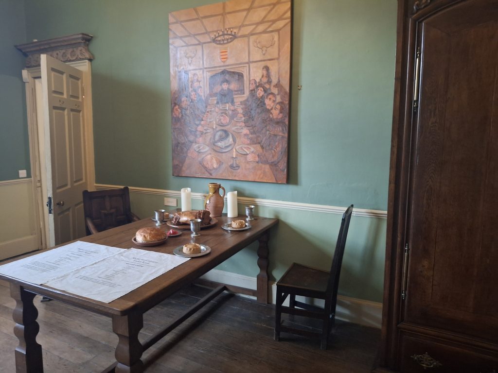 Daarna bezochten we het huis zelf. Newark Park werd oorspronkelijk gebouwd als een Tudor-jachthuis in de 16e eeuw en heeft een gelaagd gevoel van geschiedenis. Je merkt dat het door de eeuwen heen is aangepast, bewoond en verzorgd. Het voelt niet als een statisch museum, maar als een huis waarin echt is geleefd.