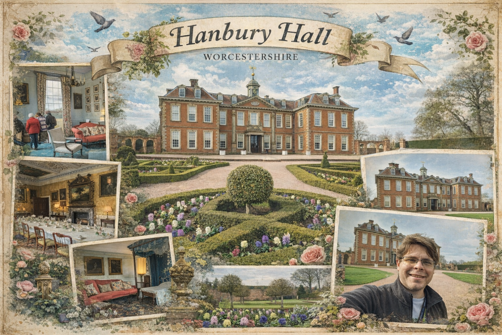 Ik reed naar Hanbury Hall, een National Trust-landgoed vlak bij Droitwich in Worcestershire. Het huis is een prachtig voorbeeld van een Engels landhuis en geeft een goed beeld van het leven op het platteland in de 18e eeuw. Zoals altijd vond ik het leuk om door de verschillende kamers te lopen en mijn favorieten uit te kiezen, terwijl ik me voorstelde welke ruimtes ik zelf zou gebruiken als radiostudio, woonkamer of slaapkamer.